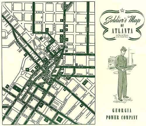 Map of central Atlanta, produced for the Armed Forces in 1940. The novel opens on Auburn Avenue (centre right)